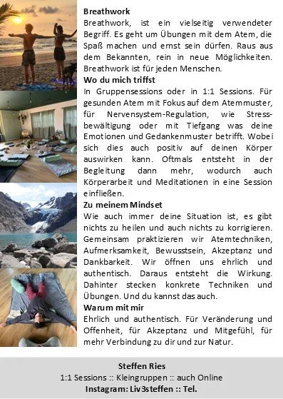 Das bin ich, Steffen. Schön, dass du dich für Atemarbeit interessierst. Ich habe IGUANA PRANA Breathwork ins Leben gerufen, um andere Menschen dabei zu unterstützen, wie sie von ihrem Atem profitieren können.